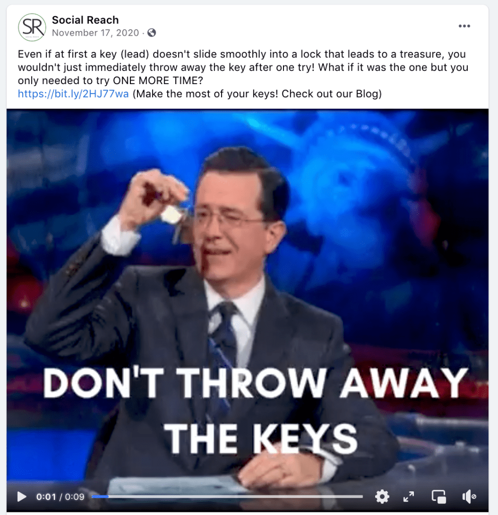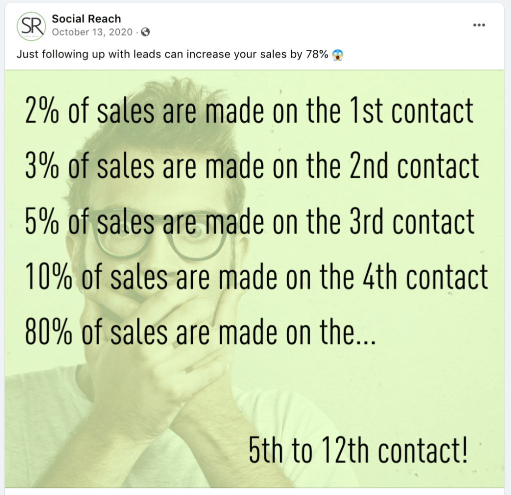 Social media marketing to encourage our clients to continually follow up with their leads, instead of abandoning them to search for more leads too quickly.