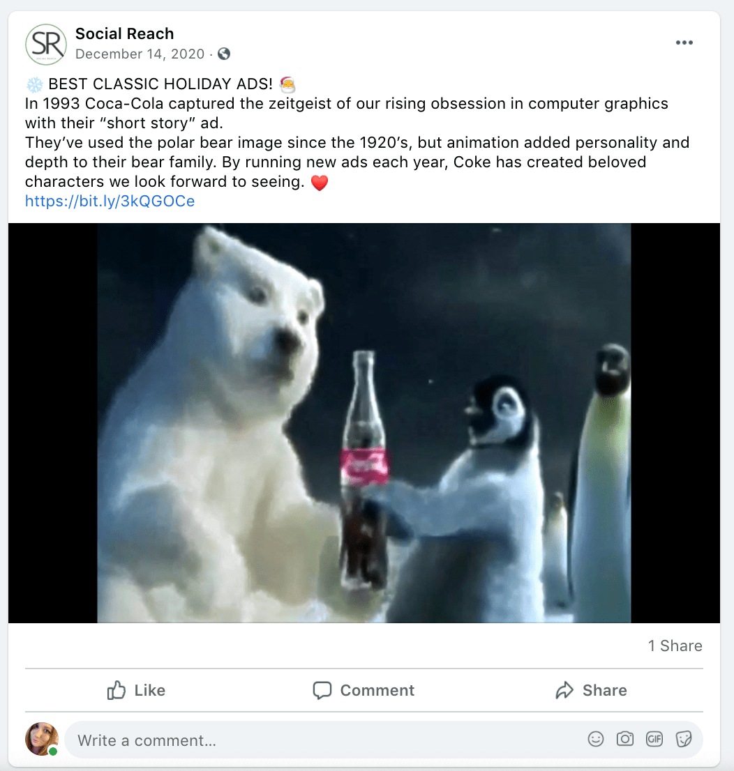 The purpose of this marketing campaign is to highlight some great advertising practices, why they are so effective, and inspire our followers for their own marketing efforts from these classically iconic and newly captivating holiday ads.